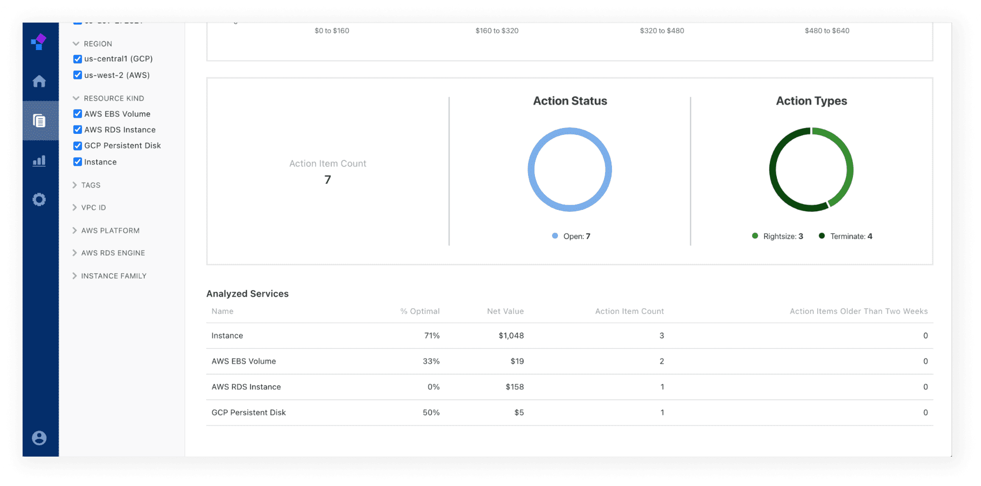 The Status of an item allows you to track which items are “Open,” “In Progress,” and “Resolved.” The Action Type indicates what needs to be done (e.g., Terminate, Rightsize) that is optimal for your workload.
