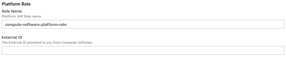 Platform RoleFor Role Name, input a name for the IAM role to be created for Compute Software. Defaults to "compute-software-platform-role".