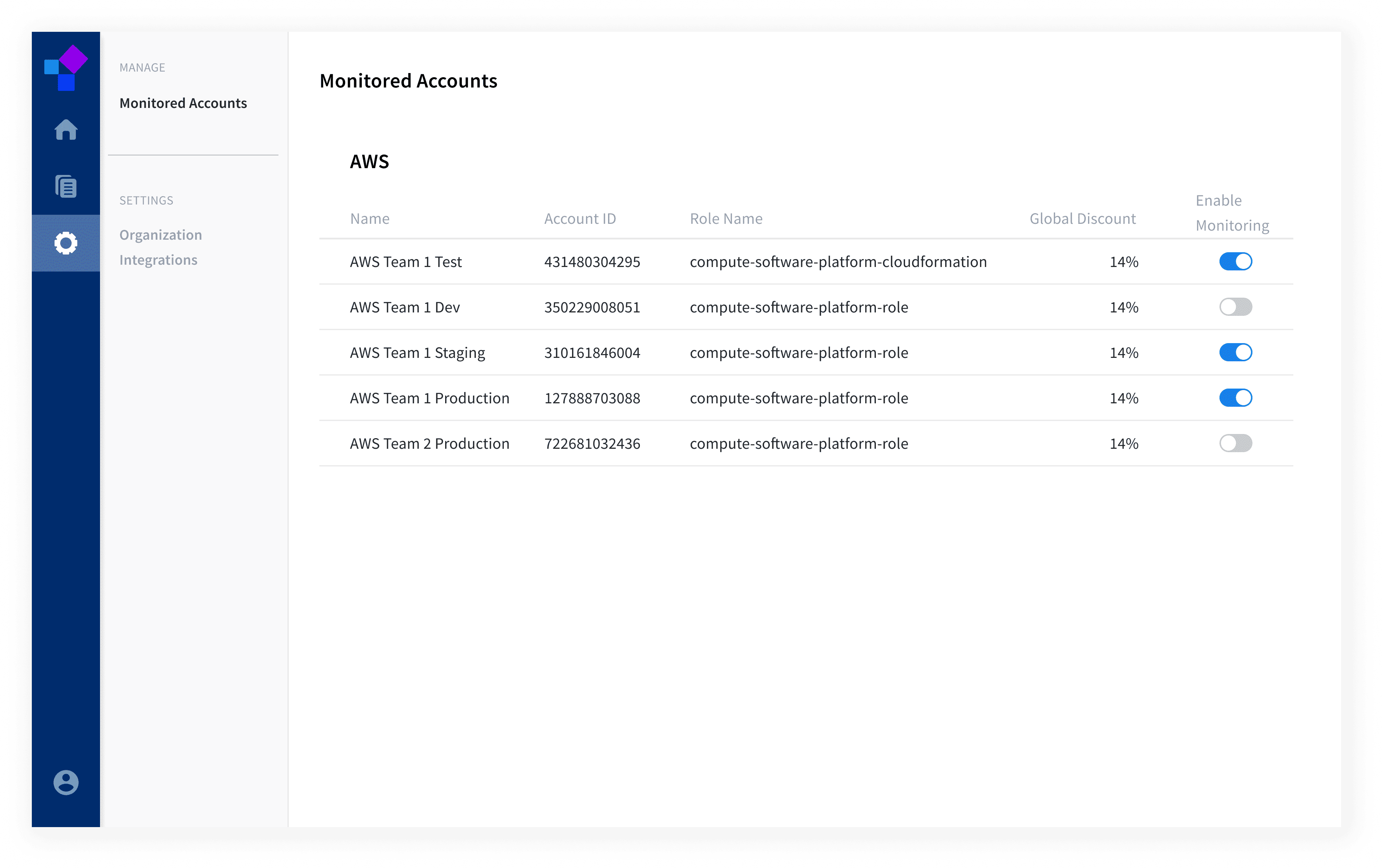 If you have a negotiated global discount with your cloud provider, you will find your global discount under each Monitored Account. Contact support@computesoftware.com to add or update your global discounts.