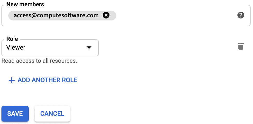 2. For "New members", input access@computesoftware.com. For "Role", select the Project > Viewer role. Click "Save".