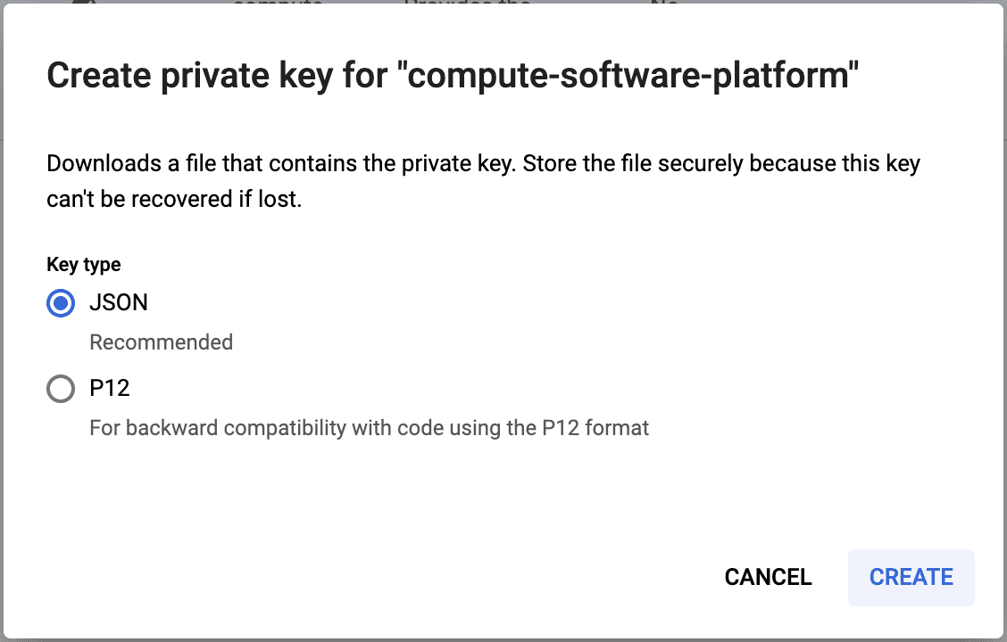 5. Ensure JSON is selected and click "Create".