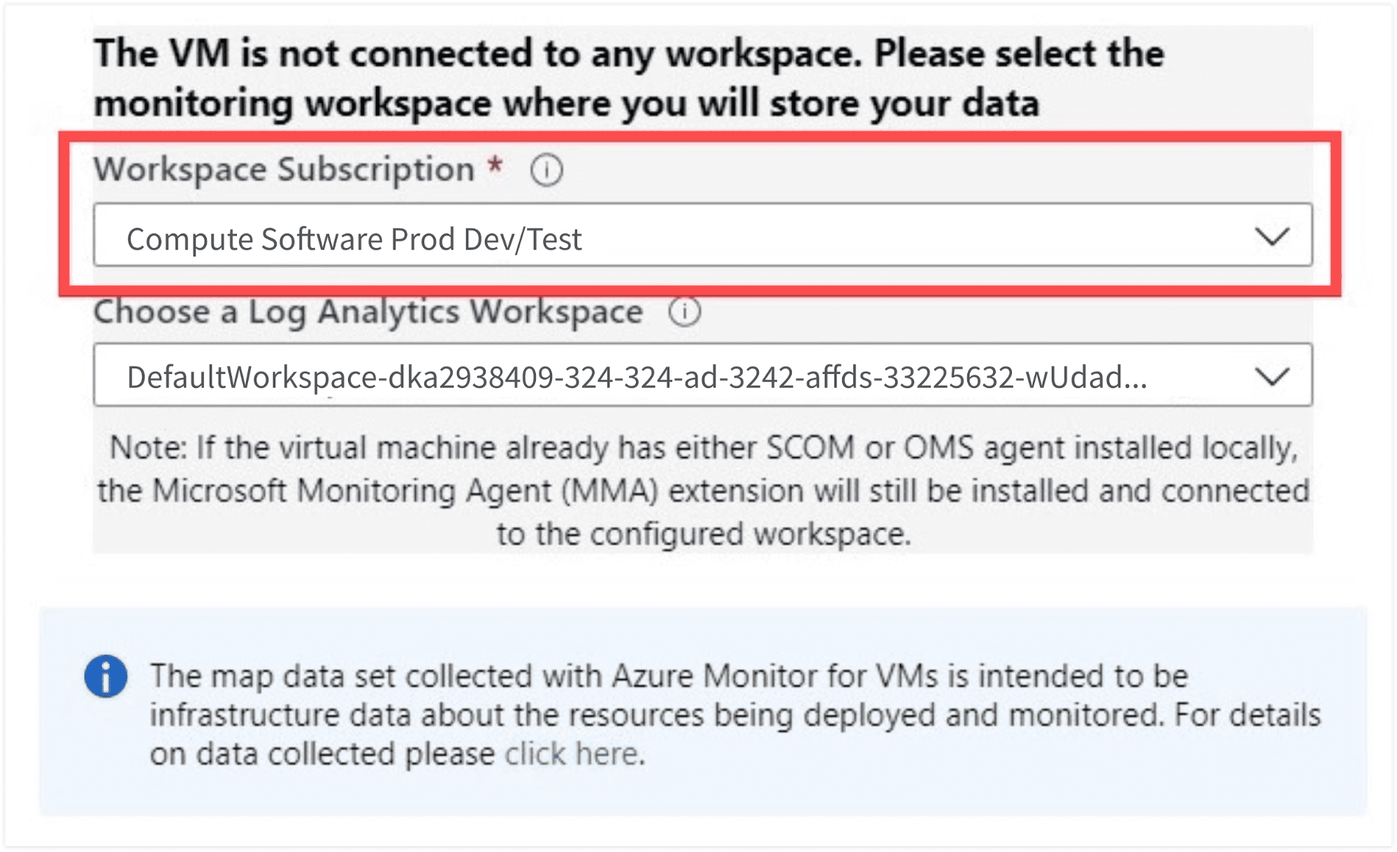 6. In the Workspace Subscription dropdown, select the subscription you want.